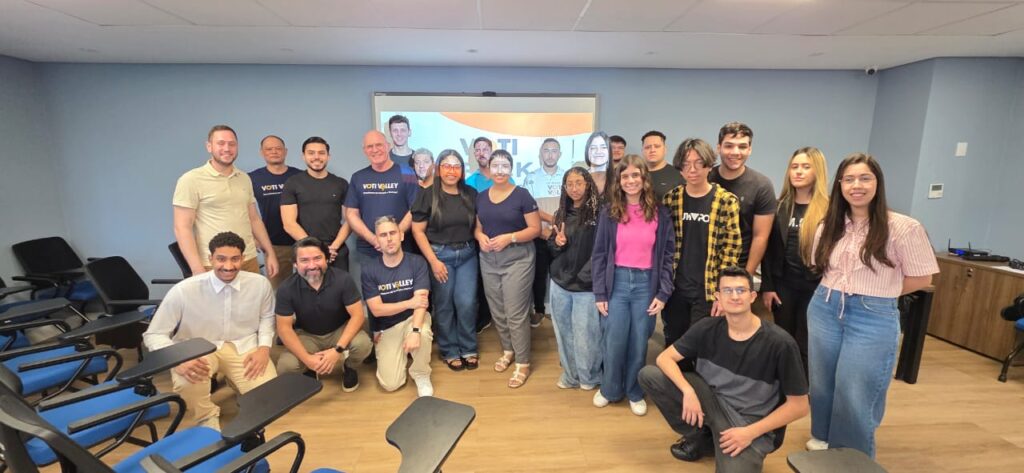 DIA 13-05-2025 – REALIZANDO, EM PARCERIA COM A FACULDADE DE CIÊNCIAS E TECNOLOGIA DE BIRIGUI E A NEXO COMPANY DE ARAÇATUBA, O WORKSHOP “VOTI VALLEY NA FATEB”, ONDE FORAM REALIZADAS UMA APRESENTAÇÃO DO PARCEIRO ALISSON, DIRETAMENTE DE PORTUGAL, DESTACANDO A IMPORTÂNCIA DO VOTI VALLEY E ABORDANDO MÉTODOS ÁGEIS DE GESTÃO, E POSTERIORMENTE A PARCEIRO FRANCIS ABORDANDO O TEMA “TRANSFORMANDO IDÉIAS EM NEGÓGIOS COM IA”.