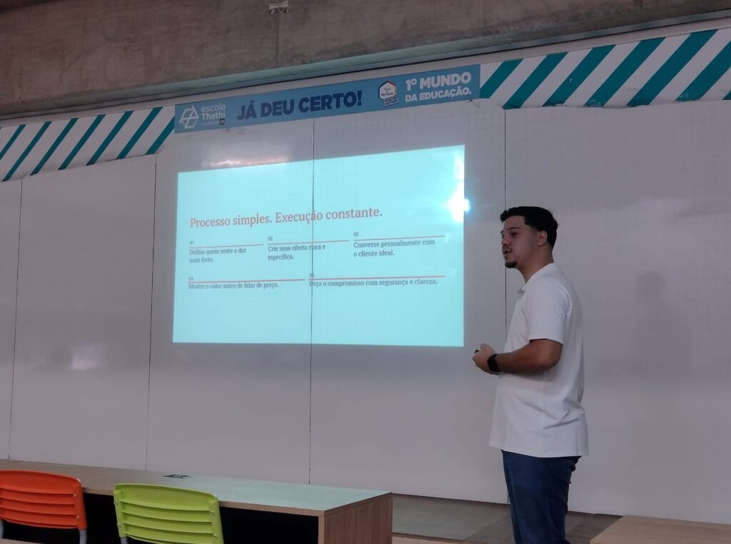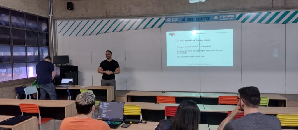 11-10-2025 – DESSA VEZ ACONTECEU DA ESCOLA THATI, EM ARAÇATUBA, O QUINTO DIA DE RESIDÊNCIA DO VOTI STARTUP TRACK. FOI UM MOMENTO INCRÍVEL DE APRENDIZADO E TROCA DE EXPERIÊNCIAS ENTRE EMPREENDEDORES, MENTORES E ENTUSIASTAS DO ECOSSISTEMA DE INOCAÇÃO, INICIANDO COM O DIRETOR DO THATI, ANDRÉ CEFALLI E EM SEGUIDA, DUAS PALESTRAS INSPIRADORAS, COM CARLOS IGNEZ, CEO DA AG4 CONTABILIDADE E ASSESSORIA,E EM SEGUIDA COM RIQUELME OLIVEIRA, FUNDADOR DA Q3 MARKETING.